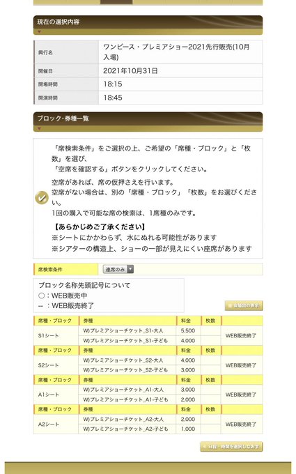 ウルキ チケット交換希望 ワンピースプレミアショーのチケット交換 譲 7月5日 日 S2シート Oブロック4 8 希望 7月4日 土 S2シート プレミアショー プレショ プレショー